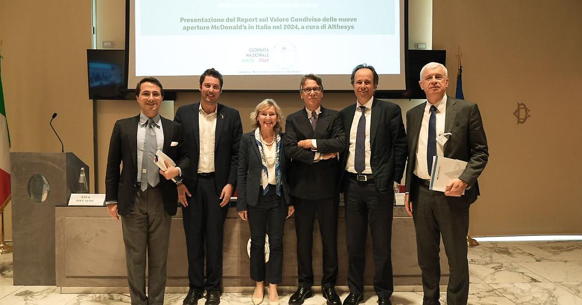 MILANO (ITALPRESS) - Con 51 nuovi ristoranti aperti nel 2024 e un ambizioso piano di crescita, McDonald's rinnova il proprio impegno a investire in Italia, generando valore che va a beneficio anche delle comunità locali, della filiera agroalimentare e del tessuto produttivo del Paese. Un valore condiviso che Althesys, con lo studio "Effetto McDonald's - Report di impatto socio-economico delle nuove aperture McDonald's Italia 2024", ha stimato raggiungerà i 164,5 milioni di euro a un anno dalle aperture, sulla base dei 52 milioni di euro già generati nella solo parte finale del 2024. Un dato complessivo equivalente a quasi l'1% della crescita attesa del PIL italiano nel 2025 e che rappresenta l'8% del fatturato delle 5 principali imprese nel settore della ristorazione, con effetti virtuosi anche in termini occupazionali. Le nuove aperture, infatti, hanno generato 2.858 nuovi posti di lavoro (diretti, indiretti e indotti), l'equivalente dello 0,5% circa dell'intero comparto della ristorazione, per 48,2 milioni di salari e contributi lungo tutta la filiera. Questi i principali dati presentati in occasione dell'evento "Condividere Valore: ristorazione informale e Made In Italy", che si è tenuto oggi presso la Sala Giacomo Matteotti della Camera dei Deputati su iniziativa di Luca Toccalini. Alla presenza delle istituzioni nazionali e locali, sono intervenuti Giorgia Favaro, Amministratrice Delegata di McDonald's Italia, Alessandro Marangoni, CEO di Althesys, il Direttore Generale di FIPE Confcommercio, Roberto Calugi e il General Manager SEDA International Packaging Group, Andrea D'Amato. "La Giornata del Made in Italy è il momento ideale per celebrare l'importanza della ristorazione collettiva per l'economia italiana. Questo settore, vera eccellenza del nostro Paese, è cruciale non solo per l'occupazione, ma anche per il suo impatto sociale. Aziende come McDonald's, pur essendo multinazionali, hanno un forte radicamento in Italia e contribuiscono a valorizzare aree interne e periferie, creando spazi di socialità per famiglie e giovani. Inoltre, promuovono la qualità degli ingredienti collaborando con le filiere agricole italiane, incluse molte produzioni DOP e IGP, orgoglio nazionale", ha commentato Luca Toccalini, X Commissione attività produttive, commercio e turismo. "Quella di McDonald's in Italia è una storia di impegno, imprenditorialità e crescita, che in quasi 40 anni ci ha portato a essere un punto di riferimento nel settore, con più di 760 ristoranti in tutto il Paese e oltre 400milioni di euro mediamente investiti ogni anno nel comparto agroalimentare italiano, anche attraverso la collaborazione con diversi Consorzi di Tutela per l'utilizzo di prodotti DOP e IGP. Una storia di creazione e di condivisione di valore, come evidenziano i risultati dello studio condotto da Althesys, che intendiamo portare avanti con un piano di investimenti e di aperture ambizioso, che prevede investimenti totali per 800 milioni di euro e l'obiettivo quota 900 ristoranti totali entro il 2027. C'è spazio per crescere e noi crediamo fortemente nel mercato italiano", ha detto Giorgia Favaro, Amministratrice Delegata di McDonald's Italia. "La nostra analisi evidenzia con chiarezza la capacità di McDonald's Italia di coniugare la crescita aziendale con un impatto positivo sul sistema socio-economico, in linea con il concetto di Valore Condiviso", ha sottolineato Alessandro Marangoni, CEO di Althesys. "La metodologia sviluppata dal nostro Shared Value Institute permette di dare concretezza allo sforzo dell'azienda attraverso i numeri: nuove aperture del 2024 portano un contributo stimato in 165 milioni di euro annui e oltre 2.800 nuovi occupati. Un dato che conferma il ruolo dell'azienda nel generare ricchezza e benessere per il Paese e al contempo promuovere la socialità, grazie all'effetto combinato della vicinanza alle comunità e di una solida struttura centrale di supporto operativo e strategico". "Il settore della ristorazione in Italia non si esprime solo per i suoi valori sociali e culturali apprezzati in tutto il mondo, ma anche per quelli economici: si parla di oltre 300 mila aziende, 59 miliardi di valore raggiunto e 1,5 milioni di occupati, che danno un contributo importante alla determinazione del prodotto interno lordo" ha affermato Roberto Calugi, Direttore Generale FIPE Confcommercio. "Creare valore attraverso economia circolare e riciclo: si può fare, con una filiera sempre più compatta che richiede a tutti gli attori della catena di contribuire con il proprio ruolo alla creazione del valore" ha aggiunto Andrea D'Amato, General Manager SEDA International Packaging Group. Con un programma di aperture che nel quadriennio 2020-2024 ha fatto passare il numero di ristoranti da 594 a 755, e prevede un numero crescente di inaugurazione nei prossimi anni, McDonald's ha creato e continua a creare valore condiviso e duraturo, a tutti i livelli della filiera, a partire dagli oltre 160 licenziatari che gestiscono il 90% dei ristoranti e a cui il marchio offre, in un contesto sfidante, un'opportunità di investimento stabile e redditizio. I ristoranti McDonald's, inoltre, rappresentano luoghi di socialità e aggregazione per le comunità locali, capaci di offrire servizi supplementari. Ad esempio, le inaugurazioni del 2024 hanno generato 28mila metri quadri di verde e spazi aperti, con 44 nuovi locali su 51 dotati di aree e giochi per bambini e famiglie. L'84% delle nuove aperture ha interessato edifici Freestander, le tipiche Casette McDonald's, strutture di nuova costruzione certificate Casa Clima e realizzate seguendo i più elevati standard per il risparmio energetico, utilizzando, ad esempio, illuminazione a LED e vetri basso-emissivi per migliorare l'isolamento termico. Grazie poi al percorso di transizione ecologica verso un packaging più sostenibile - che ha significato la progressiva eliminazione della plastica monouso, a favore di materiali più sostenibili come la carta ricic
