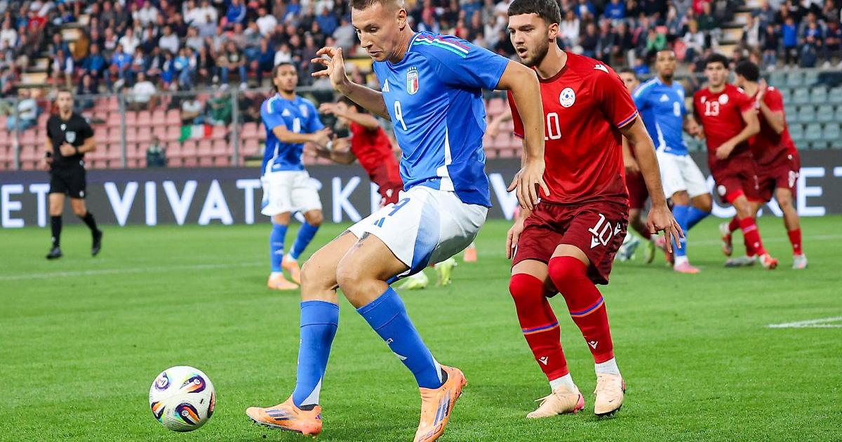 CREMONA (ITALPRESS) - Un po' di fatica nello sbloccare la gara ma ancora un'ottima prestazione per l'Italia Under 21, che prosegue nel suo percorso netto, centrando la quarta vittoria in altrettante partite giocate nelle qualificazioni agli Europei di categoria. Allo "Zini" di Cremona termina per 5-1 la partita contro l'Armenia, l'avversario sulla carta più abbordabile del girone ma che, con il suo atteggiamento ultra difensivo, ha di fatto intasato qualsiasi linea di passaggio complicando la partita agli azzurrini nella prima frazione. Italia, quindi, in vetta con 12 punti all'attivo, come la Polonia, prima per la migliore differenza reti: il prossimo mese si giocherà lo scontro diretto. A Cremona scendono in campo gli stessi undici che hanno dato spettacolo contro la Svezia a Cesena: primo pericolo al 16', quando Marianucci sbaglia l'appoggio arretrato e spalanca una prateria per Eloyan, che strozza troppo il tiro. All'Italia serve una scossa, che arriva con Ndour: prima un palo colpito di testa, poi il rigore conquistato anticipando Bandikian, che lo calcia; sul dischetto va il centrocampista della Fiorentina, che però calcia in modo debole e per niente angolato, facilitando la parata di Matinyan. Nel primo tempo succede poco altro: l'Italia ha sempre palla ma è difficile trovare spazi. Serve l'intuizione di Baldini, che puntualmente arriva a inizio ripresa: entra Dagasso, che punge la difesa armena con i suoi inserimenti. Uno di questi vale il vantaggio al 59', merito anche della grande imbucata di Pisilli. Come spesso accade, questo è l'episodio che sblocca la partita: appena tre minuti, infatti, e Bartesaghi accomoda tutto facile per la rete di Camarda a porta vuota. Dieci minuti più tardi, il classe 2008 trova la doppietta di testa sul cross di Dagasso. Ancora tre minuti e Pisilli si mette in proprio con uno slalom speciale in area, Matinyan è incerto nella ribattuta e Fini insacca il facile tap-in. Al 78', Palmisani controlla male sul retropassaggio di Bartesaghi e Vardanyan ne approfitta rubando palla e segnando la rete della bandiera. C'è spazio anche per il palo di Koleosho, altro grande protagonista della partita a cui è mancato solo il gol; poco male, perché fornisce l'assist per la rete di Ekhator nel recupero. - foto Ipa Agency - (ITALPRESS). mec/pdm/red 14-Ott-25 20:20