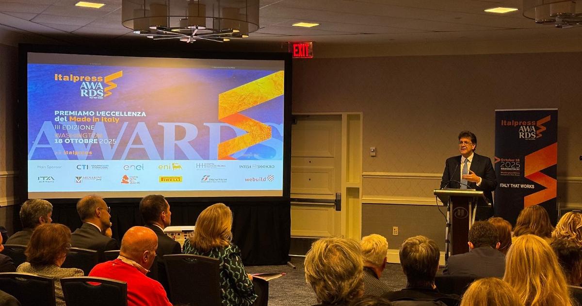 WASHINGTON (STATI UNITI) (ITALPRESS) - Torna il tradizionale appuntamento con gli Italpress Awards, in collaborazione con NIAF. La terza edizione del premio - istituito dall'agenzia di stampa Italpress, diretta e fondata da Gaspare Borsellino - che onora le importanti personalità italiane e italoamericane che valorizzano e promuovono l'eccellenza del Made in Italy nel mondo, si è tenuta presso la Georgetown West Room dell'Hilton Washington DC Hotel, nell'ambito del 50° anniversario della Cena di Gala della National Italian American Foundation, presieduta da Robert Allegrini. Quest'anno sono stati 10 i vincitori degli Italpress Awards: il vicepresidente della Camera dei Deputati Giorgio Mulè, il presidente della Regione Lazio Francesco Rocca, il presidente di Enav Pasqualino Monti, il presidente di ICE Matteo Zoppas, il presidente di Ita Airways Sandro Pappalardo, la presidente di Federturismo Marina Lalli, il direttore dell'Istituto Italiano di Cultura di New York Claudio Pagliara, l'amministratore delegato di ADR Aeroporti di Roma Marco Troncone, il presidente della Fiera del Levante Gaetano Frulli, ed il Gruppo Menarini rappresentato dal direttore della Comunicazione Valeria Speroni Cardi. A tutti è andata una raffigurazione del mondo con l'Italia in evidenza realizzata da Marco Gallotta, artista di origini italiane, residente a New York, noto a livello mondiale per le sue tecniche di taglio della carta, disegno, pittura e incisione. Gaspare Borsellino, fondatore e direttore responsabile dell'agenzia Italpress, si è detto "molto soddisfatto di un premio che continua a crescere anno dopo anno". E ha dato appuntamento per il 2026, per la quarta edizione, che si terrà "nuovamente a Washington insieme alla Niaf". Tra i presenti alla cerimonia, il ministro del Turismo, Daniela Santanchè, che ha evidenziato l'importanza dei legami tra Italia e Stati Uniti: "Ringrazio Italpress che ha fatto veramente una bella iniziativa - ha affermato -. Abbiamo premiato delle eccellenze italiane e questo ci riempie di orgoglio. In più abbiamo 50 anni di Niaf quindi il legame forte tra Italia e Usa. Un ponte con i 17 milioni di italiani che vivono negli Stati Uniti da molto tempo, magari sono anche nati negli Stati Uniti ma hanno le loro radici in Italia. E' importante dove si va ma anche importante sapere da dove si viene, conoscere le proprie origini". Un rapporto importante, quello con gli Usa, evidenziato anche dall'ambasciatore italiano a Washington, Marco Peronaci, "una storia profonda, prestigiosa che si proietta nel futuro", ha detto Peronaci, "c'è molta strada che Italia e Stati Uniti possono percorrere insieme in maniera visionaria per contribuire insieme a un mondo più prospero". Presente quest'anno anche l'assessore all'Urbanistica del Comune di Palermo, Maurizio Carta, che ha presentato la Mostra sul Festino di Santa Rosalia. "È stato un grande onore rappresentare Palermo, città ospite, agli Italpress Awards, che per il terzo anno premiano le eccellenze delle professioni e delle competenze manageriali di donne e uomini che si sono distinti nel loro lavoro, agendo anche come ambasciatori di italianità nel mondo. È un privilegio essere qui nell'ambito dei 50 anni della NIAF per celebrare Palermo e la sorellanza che lega la mia città a Washington e alle altre, e la fratellanza tra l'Italia, il mio paese - che è quello delle origini familiari degli italo-americani - e gli Stati Uniti, il paese che hanno scelto per coltivare talenti e opportunità", ha detto Carta. La cerimonia, presentata da Stefano Vaccara, ha avuto il supporto di Cisalpina, Enel, Eni, HHH (Hospital Healthcare Holdings), Intesa Sanpaolo, Ita Airways, Menarini, Nuova Fiera del Levante; Pirelli, Trenitalia e Webuild. Foto Italpress (ITALPRESS). abr/com 19-Ott-25 17:20
