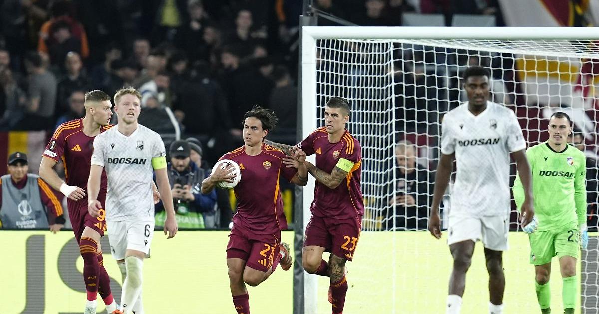 ROMA (ITALPRESS) - Altra serata amara per la Roma che gioca una partita sottotono e tecnicamente imprecisa contro il Viktoria Plzen e perde in casa per 1-2 nella terza giornata di Europa League. Un altro ko, quindi, per i giallorossi, che non riescono a replicare la prestazione vista con l'Inter, nonostante la sconfitta, e, anzi, perdono ancora in casa dopo la sfortunata serata contro il Lille. Confermando, inoltre, le grandi difficoltà a segnare. Tra i titolari scelti da Gasperini spicca il debutto da titolare di Ziolkowski in difesa, mentre in attacco ci sono Soulé e Dybala dietro a Dovbyk. Pronti-via e il centravanti ucraino trova il tiro, facile per Jedlicka. Ma si vedono subito anche le incertezze in difesa, con un pasticcio tra Svilar e Hermoso, salvati dal fuorigioco di Durosinmi. Al 20' Adu fa valere tutto il suo strapotere fisico sorprendendo Ziolkowski e battendo Svilar da pochi passi. La Roma accusa il colpo e va in confusione: al 22' Wesley sbaglia un rilancio con il mancino, Dweh intercetta e scarica su Souaré, che lascia partire un gran tiro dai 25 metri che si infila all'angolino basso alla sinistra di Svilar. Il momento è critico e Gasperini, dopo mezz'ora, decide di togliere il giovane Ziolkowski inserendo El Shaarawy. La Roma ci prova con Wesley e Soulé, ma in generale ai giallorossi manca sempre l'ultimo passaggio. Poco movimento, poche idee e poca precisione, e dagli spalti si sentono anche diversi fischi quando le squadre rientrano negli spogliatoi. A inizio ripresa entra anche Pisilli al posto di Koné, che ha rimediato una botta alla caviglia in un contrasto precedente. Il centrocampista italiano ha un ingresso positivo, tanto che dopo pochi minuti si guadagna un calcio di rigore: il suo colpo di testa, infatti, viene deviato sul fondo con un braccio da Jemelka. Richiamato all'on-field review, il turco Meler sanziona il maldestro difensore dei cechi indicando il dischetto. Dybala non sbaglia, è 1-2 al 54' (gol numero 200 da professinista per l'argentino). Eppure la carica per aver dimezzato lo svantaggio non dura molto. Ci provano El Shaarawy e Soulé con dei tentativi interessanti, ma piano piano la difesa ospite prende le misure. Entrano anche Ferguson e Bailey, con quest'ultimo che si libera bene per il tiro all'86' ma calcia sul fondo. L'ultimo sussulto arriva al 96': schema giallorosso su punizione, Pisilli segna ma era in fuorigioco sull'assist di Wesley. Finisce, dunque, così: la Roma rimane ferma a 3 punti, mentre il Viktoria Plzen sale a 7 e prosegue imbattuto. - Foto Ipa Agency - (ITALPRESS). mec/ari/red 23-Ott-25 22:59