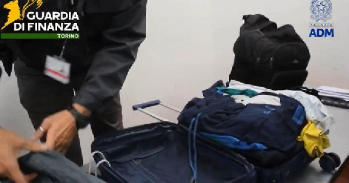 TORINO (ITALPRESS) - Funzionari dell'Agenzia delle Dogane e dei Monopoli, in collaborazione con i militari del Comando Provinciale della Guardia di Finanza di Torino, hanno intercettato l'Aeroporto "Sandro Pertini" un uomo di origine peruviana in arrivo da Lima (Perù), via Parigi. Insospettiti dalle risposte evasive e contraddittorie fornite dal viaggiatore, relativamente al motivo del viaggio e alle mete del soggiorno in Italia, effettuavano un'accurata ispezione del suo bagaglio da stiva, all'esito della quale venivano individuati complessivamente 8,6 chilogrammi di cocaina, abilmente occultati all'interno di un doppio fondo della valigia e nelle fodere e imbottiture dello zaino, dei borselli e del gilet del passeggero. La sostanza stupefacente rinvenuta veniva posta sotto sequestro, mentre il corriere veniva tratto in arresto con l'accusa di "traffico e detenzione illeciti di sostanze stupefacenti o psicotrope", punito con la reclusione da 6 a 20 anni e con la multa da 26 mila a 260 mila euro. L'illecita immissione sul mercato della partita di cocaina intercettata avrebbe fruttato oltre un milione di euro. Foto: screenshot video Guardia di Finanza (ITALPRESS). tvi/com 06-Nov-25 08:44