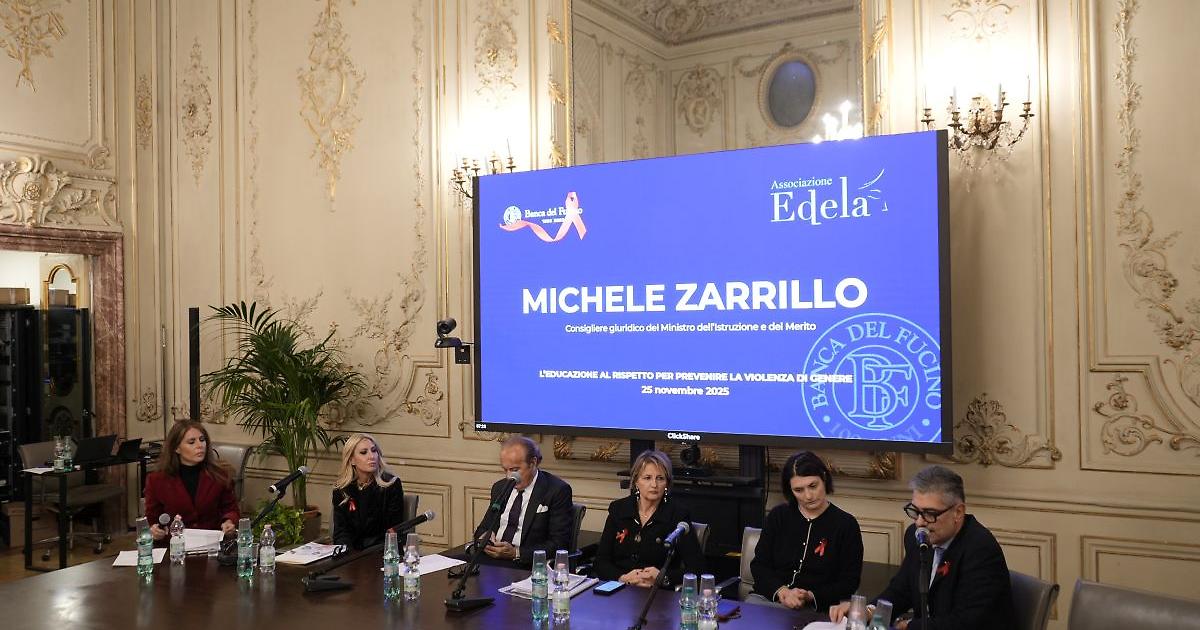ROMA (ITALPRESS) - "L'educazione al rispetto per prevenire la violenza di genere". E' il nome dell'evento che, all'interno della sede di Banca del Fucino con il supporto dell'associazione Edela, ha raccolto rappresentanti delle istituzioni e delle associazioni per approfondire un tema delicato nella Giornata internazionale per l'eliminazione della violenza contro le donne, istituita dall'Assemblea generale delle Nazioni Unite a dicembre del 1999. In apertura, i presenti hanno potuto visionare il trailer del documentario "Lee and me", un viaggio nella vita di una donna che ha subito una violenza e di un uomo che ha commesso un abuso. Inoltre, per l'occasione, tutti i presenti hanno indossato un fiocco rosso, a simboleggiare la lotta alla violenza di genere. "Siamo onorati come Banca del Fucino di ospitare questo evento come Banca del Fucino per la giornata del 25 novembre - le parole di Mauro Masi, presidente di Banca del Fucino -. Dall'istituzione della giornata sono stati fatti molti progressi, ma bisogna ancora fare molto, soprattutto lavorando sulla consapevolezza. Noi siamo una banca del territorio, ed essere vicini alle popolazioni del nostro territorio significa lavorare sulla consapevolezza. Per noi, la lotta alla violenza di genere è un pilastro, molto vicino al nostro essere banca". "Oggi è un appuntamento importantissimo - ha detto Roberta Beolchi - Presidente Associazione Edela -. Sarà un momento dove scenderemo in campo per la lotta alla violenza di genere, accendendo i riflettori anche sugli orfani di femminicidio. Una data ancora più determinante quest'anno, perché proprio oggi verrà votata alla Camera la legge che potrebbe introdurre il reato di femminicidio". -foto mec/Italpress - (ITALPRESS). mec/mgg/red 25-Nov-25 19:49