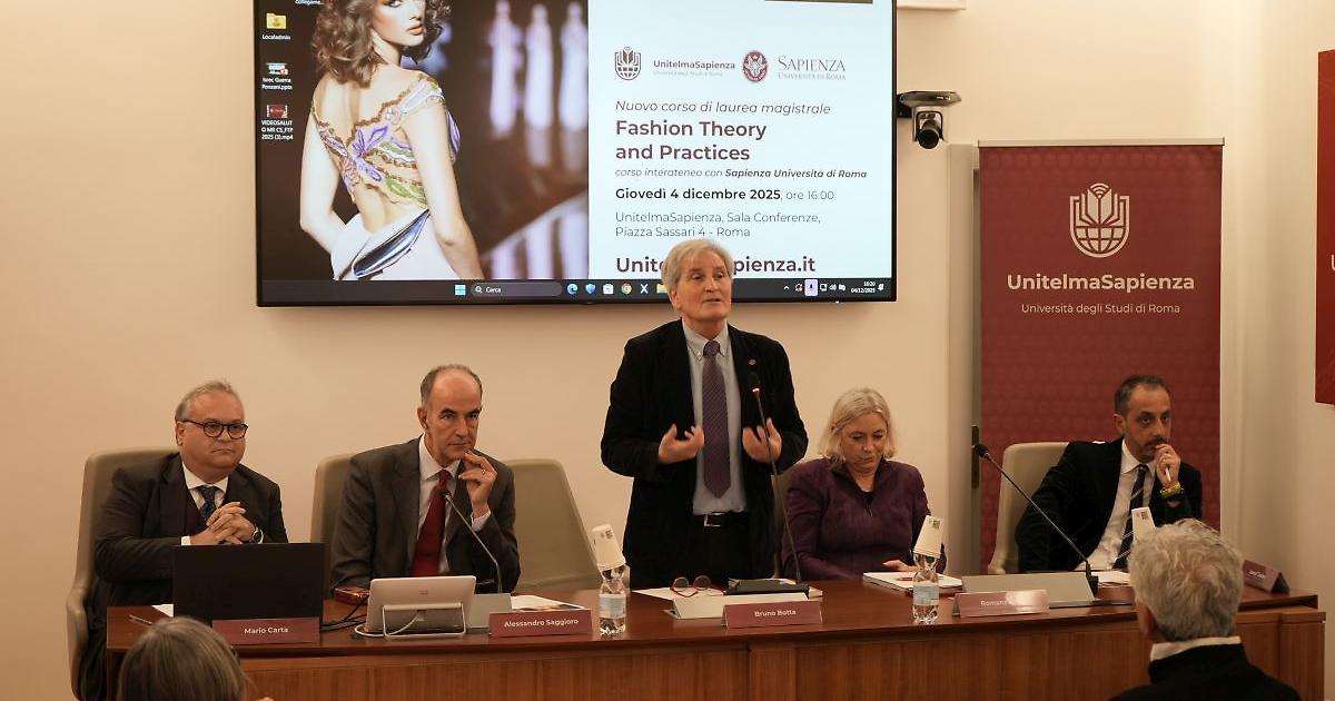 ROMA (ITALPRESS) - È stato presentato, nella sede di UnitelmaSapienza a Roma, il corso di laurea magistrale interateneo con Sapienza Università di Roma, in Fashion Theory and Practices. Attivo dall'anno accademico 2025/2026, il corso di studi rappresenta l'ideale e potenziale completamento del corso di laurea triennale in Scienze della moda e del costume. Le attività didattiche sono gestite in modalità ibrida, in presenza e online, solo il primo semestre del primo anno è erogato esclusivamente a distanza. Tutti i corsi e le attività didattiche si svolgono interamente in lingua inglese e sono rivolte ad un'utenza internazionale. Nel corso della presentazione, aperta da un videomessaggio della Rettrice di Sapienza Università di Roma, è intervenuto anche lo stilista palestinese Jamal Taslaq, con una relazione dal titolo "Where The West Meets The East and Tradition Embraces Innovation", assieme a Francesco Annunziata, CEO di JT Lifestyle and WorldcApp. "Questo corso è interessante per l'interazione con la Sapienza - il commento di Bruno Botta, Rettore di UnitelmaSapienza -. È un corso internazionale in modalità mista. La ragione è quella di provare a raggiungere tutti, in particolare ragazze e ragazzi che vengono da paesi lontani, che possono avere qualche difficoltà, soprattutto in un'epoca come questa. Uno degli scopi dell'università è quello di mettere in condizione tutti di poter crescere sotto tutti i punti di vista". "Il corso di Fashion Theory and Practices è un progetto formativo che parte da un preesistente corso della Sapienza, che grazie si è innovato sia nella modalità didattica grazie alla modalità ibrida e alla collaborazione con UnitelmaSapienza, sia in termini culturali - le parole di Romana Andò, Presidente del corso -. Il sistema moda è in continua trasformazione, e l'obiettivo di questo corso è di rispondere a queste sfide". "Voglio portare la mia esperienza agli studenti - ha detto lo stilista Jamal Taslaq -. Vengo dalla Palestina, e ho realizzato il mio sogno grazie all'Italia e al Made in Italy. Il mio messaggio è quello di far capire che bisogna mantenere le proprie tradizioni, sviluppando un filo conduttore tra l'oriente e l'occidente. L'identità è importante, e si trasmette nello stile e nel carattere quando qualcuno crea una collezione". "Abbiamo annunciato due progetti ai quali lavoreremo l'anno prossimo - il commento di Francesco Annunziata - CEO di JT Lifestyle and WorldcApp -. Da una parte un concept nuovo chiamato Eternal Couture, dall'altra un progetto più tecnologico che serve a consegnare all'uomo e alla donna contemporanei l'abito perfetto". - Foto Italpress - (ITALPRESS). mec/sat/red 05-Dic-25 13:35