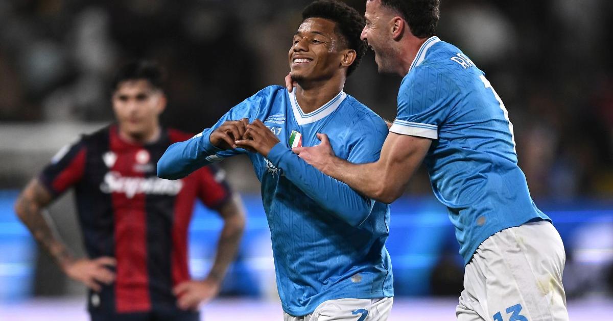 RIYADH (ARABIA SAUDITA) - È festa grande per il Napoli, che alza al cielo a Riyadh la Supercoppa Italiana grazie al 2-0 inflitto in finale al Bologna. È una doppietta di Neres a mettere il sigillo su una vittoria meritata da parte di Di Lorenzo e compagni. La prima grande occasione arriva al 10' ed è per i partenopei. McTominay verticalizza per Elmas, che entra in area dalla sinistra e ci prova con un destro sul primo palo che si spegne sul fondo. Alla mezz'ora, Ravaglia deve mettere le mani per fermare un insidioso tiro cross teso dalla sinistra di McTominay. Gli uomini di Conte si divorano il possibile 1-0 al 37' quando, al termine di una bell'azione tutta di prima, Neres manda in porta Spinazzola che ci prova con uno scavetto, ma Ravaglia salva in uscita con Heggem che spazza a ridosso della linea di porta. Il gol è nell'aria e arriva due minuti dopo. Neres riceve il pallone direttamente da rimessa laterale e lascia partire un mancino dalla lunga distanza che si infila sotto l'incrocio dei pali lontani. Una rete di pregevole fattura che manda di fatto le due squadre negli spogliatoi sull'1-0. Il primo squillo della ripresa arriva al 2' è ancora di marca azzurra, con Hojlund che si accentra sul destro e conclude sul primo palo, ma Ravaglia para. Pochi istanti dopo, il portiere rossoblù deve alzare in corner un colpo di testa di Rrahmani. La formazione di Italiano si vede per la prima volta al 10', quando Orsolini scappa sulla destra e pennella al centro un pallone invitante sul quale si avventa Ferguson, che da ottima posizione incorna però centralmente. Gol sbagliato, gol subito. Al 12', Lucumí perde un pallone sanguinoso sulla pressione di Neres, che ne approfitta e insacca con il mancino firmando la doppietta personale. La partita, di fatto, finisce qui. I campioni d'Italia non corrono alcun rischio e si rendono ancora pericolosi nel finale in un paio di occasioni, ma il risultato non cambierà più. Al fischio finale può scattare la festa per il Napoli, che conquista la terza Supercoppa della propria storia. Le due squadre torneranno in campo domenica per il campionato. - foto Image - (ITALPRESS). xh9/glb/red 22-Dic-25 21:55