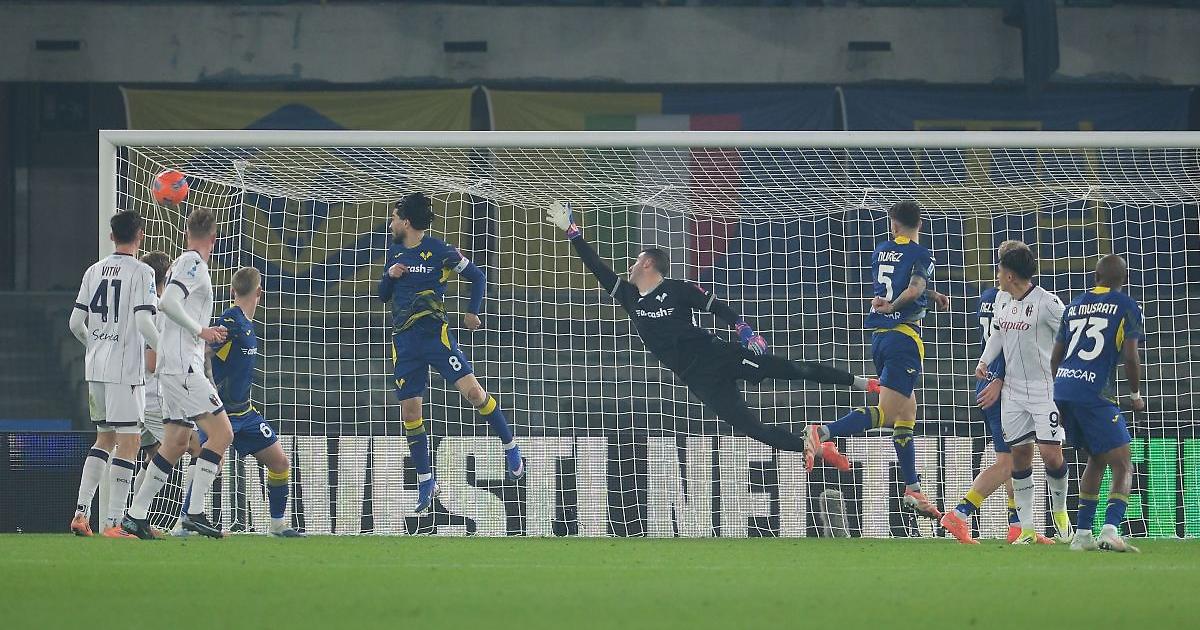 VERONA (ITALPRESS) - VERONA (ITALPRESS) - Dopo sette gare si sblocca il Bologna che sconfigge 3-2 un combattivo Verona. Gli scaligeri passano in vantaggio con Orban, si fanno rimontare (Orsolini, Odgaard e Castro), accorciano per l'autorete di Freuler e sfiorano il pari nel finale: Zanetti e i suoi, dunque, continuano ad accumulare buone prove e tanti rimpianti. Per entrambe le squadre questo match ha un'importanza capitale e, dunque, nei primi minuti regna la tensione al Bentegodi. Nasce anche da questo nervosismo la rete dell'Hellas Verona, con un'azione che parte da un errore rossoblù e dal coast-to-coast di Bernede. Il francese si fa quaranta metri palla al piede e aziona Orban, che sorprende Ravaglia calciando sul palo lungo e spiazzandolo. Siamo dunque sull'1-0 per i gialloblù che, però si disuniscono e vengono puniti nella mezz'ora seguente. Proprio Orban sbaglia l'intervento difensivo su Orsolini, che rientra sul sinistro e trova un eurogol: pallone al sette da posizione impossibile, al 21' è 1-1. La partita ha cambiato definitivamente volto e domina il Bologna, che ribalta il risultato al 29' con Odgaard, autore di una rasoiata dal limite sull'assist di Dominguez. C'è un protagonista argentino anche nel tris, con la grande giocata di Castro, che tira al volo e beffa Montipò con una sassata che si stampa sulla traversa ed entra in rete. Si va dunque al riposo sul 3-1 per il Bologna e Zanetti reagisce subito, con tre cambi nei primi dieci minuti nella ripresa. Non lascia il campo solo l'ammonito Unai Núñez, annichilito da Dominguez, e si passa al tridente: Giovane affianca Sarr e Orban. Il Bologna prova controllare e l'Hellas, dopo qualche minuto di assestamento, va all'assalto. Il caos calmo generato dal tridente gialloblù porta al gol che riapre la sfida, con l'autorete di Freuler sul tiro-cross di Orban (71'), e non solo. Passano pochi minuti e, infatti, gli scaligeri sfiorano anche il clamoroso pari in mischia: Ravaglia si supera, doppia occasione sfumata per Sarr e Gagliardini. Nel finale entra anche Mosquera, ma l'assedio gialloblù non ha esito. Vince il Bologna, che sale a quota 30 punti e scavalca la Lazio: dopo 54 giorni vincono i rossoblù, ora a -1 dal settimo posto. Sempre ultimo, invece, il Verona a quota 13 punti e in tandem col Pisa. La salvezza ne dista quattro e, ora, la panchina di Zanetti torna a scaldarsi... - Foto Ipa Agency - (ITALPRESS). xq3/ari/red 15-Gen-26 20:37
