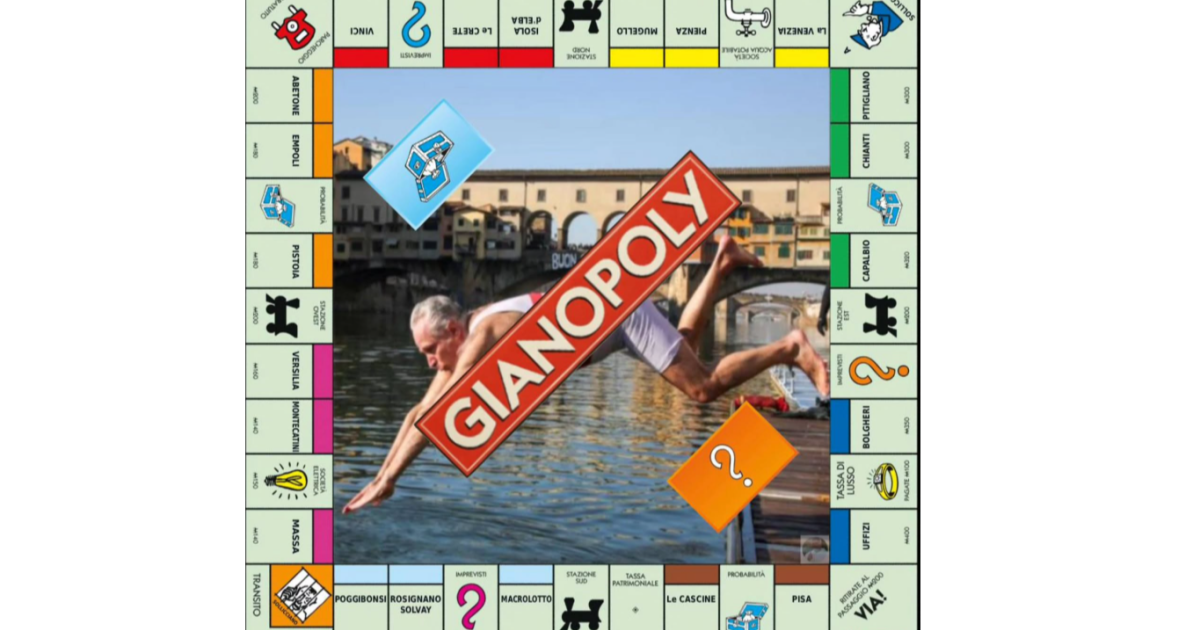 Il presidente appare al centro del tabellone in uno dei suoi storici tuffi nell'Arno e le varie caselle disegnano la Toscana. Si parte da Pisa, poi Le Cascine, il Macrolotto, Rosignano Solvay, Poggibonsi, Massa, Montecatini, Versilia, Pistoia, Empoli, Abetone, Vinci, Le Crete, Isola d'Elba, Mugello, Pienza, La Venezia, Pitigliano, Chianti, Capalbio, Bolgheri e Uffizi. Non mancano la Tassa di lusso e la Patrimoniale. Così come Probabilità, Imprevisiti, le quattro stazioni (strano che una non sia Medioetruria), Acqua ed Elettricità. E in prigione si va direttamente a Sollicciano. Chiaro il post che accompagna il Gianopoly: "Come far passare il tempo dell'attesa dei risultati elettorali? Per esempio... con un bel gioco da tavolo! Gianopoly". Ovviamente pioggia di like e di commenti per un post che ha strappato più di un sorriso. Ora inizia la vera partita: la composizione della nuova giunta elettorale. Per il presidente non sarà affatto facile soddisfare gli appetiti dei partiti e dei territori.