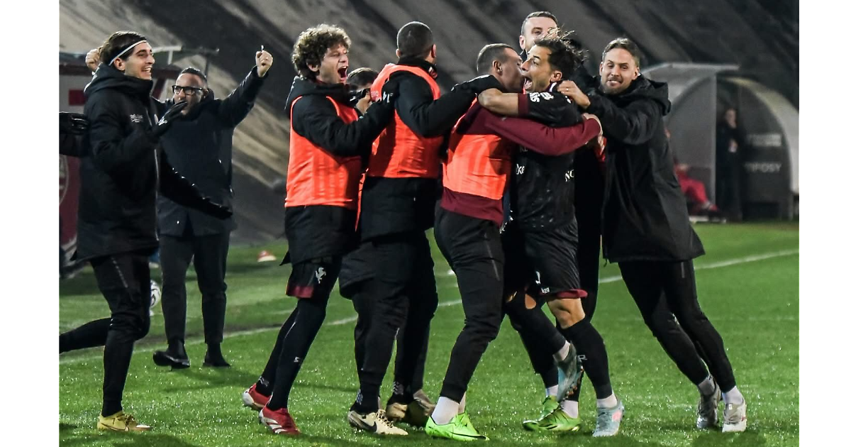 La gioia degli amaranto dopo la rete (Foto SS Arezzo)