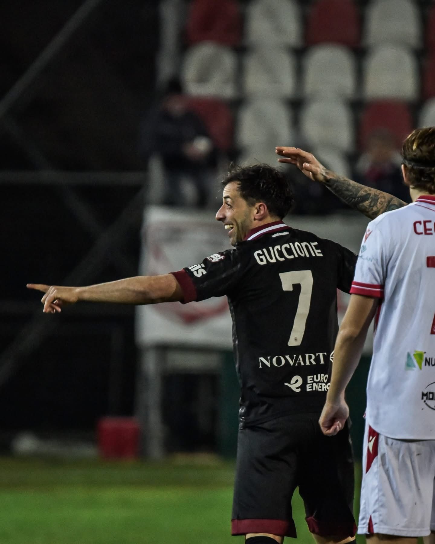 Sessant’anni dopo, l’Arezzo torna a vincere a Carpi. In una serata che avvicina sempre di più il Cavallino alla Serie B, in una partita complessa, serviva un colpo speciale: lo trova Guccione, direttamente da calcio d’angolo. E come spesso accade nelle notti migliori, arrivano buone notizie anche dagli altri campi: cade il Ravenna, pareggia l’Ascoli. Tradotto: amaranto primi con 59 punti, a +10 sui ravennati e +12 sui marchigiani. Bastano due minuti per mettere la gara sui binari giusti: Guccione pesca direttamente dalla bandierina il gol che gela il Cabassi. Una traiettoria tesa verso il primo palo. Sorzi si fa sorprendere, la palla gli sbatte praticamente sui guantoni e finisce direttamente in porta.