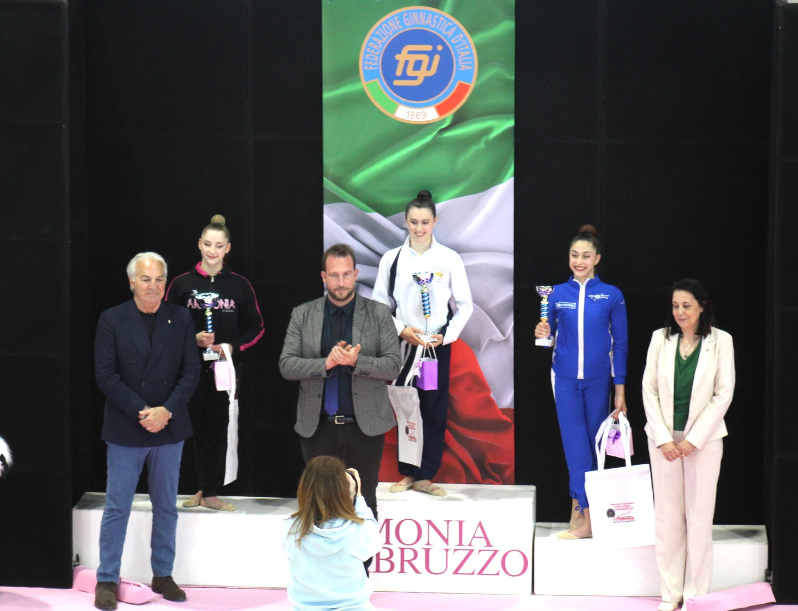 Ginevra ha incantato la giuria con i suoi esercizi da applausi a palla, clavette, nastro e cerchio totalizzando il punteggio di 98,350 che vale il primo gradino del podio e il titolo di campionessa italiana che arriva dopo una escalation di successi alle fasi regionale e interregionale.