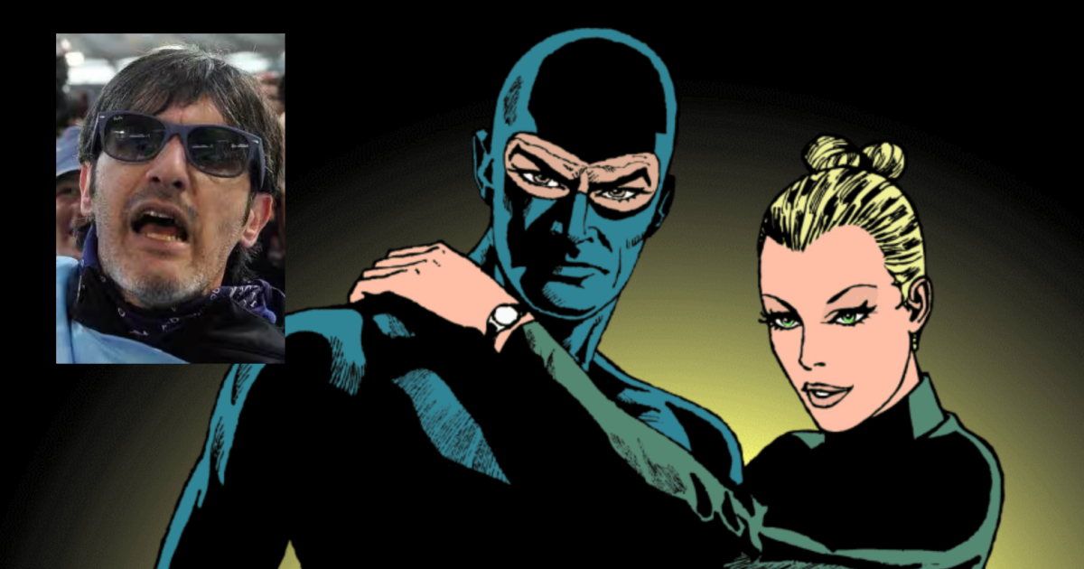 Diabolik con Eva Kant. Nel riquadro Fabrizio Piscitelli