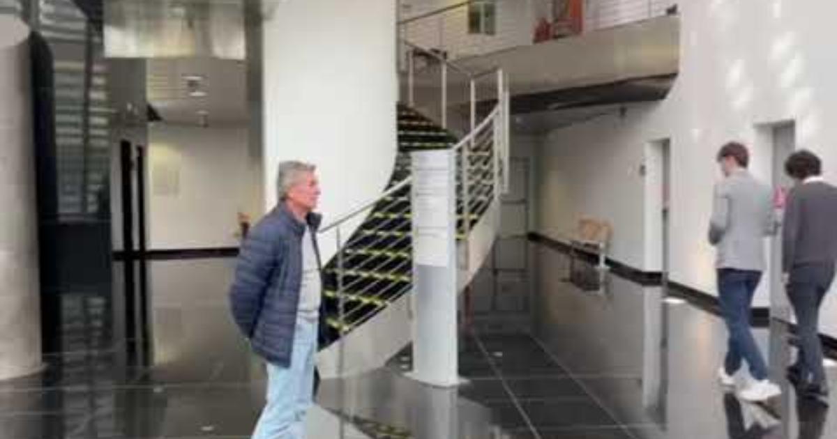 L'ingresso in tribunale, ad Arezzo, di Sandro Mugnai, l'artigiano che il 5 gennaio 2023 uccise il vicino di casa Gezim Dodoli che gli buttava giù l'abitazione con un mezzo meccanico.