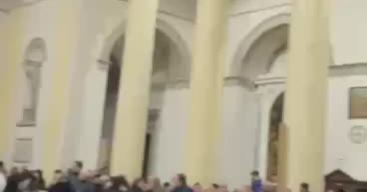 La Volata 2026. Così nella notte di Pasqua a Castiglion Fiorentino (Arezzo) l'ingresso della statua di Cristo Risorto nella chiesa della Collegiata.