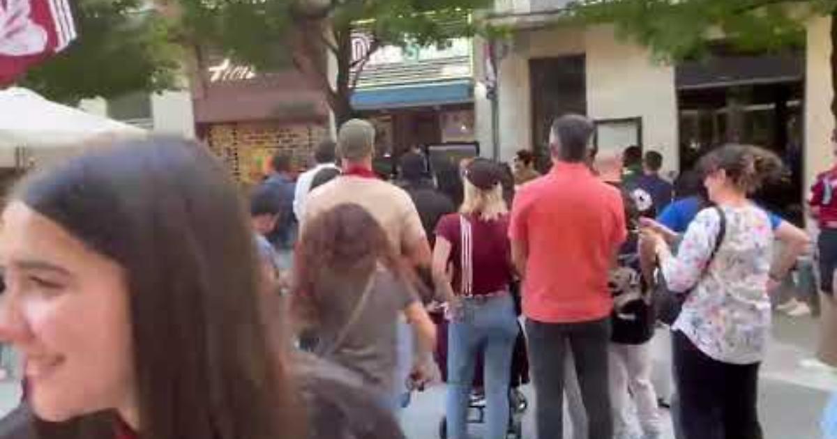 Arezzo in serie B. Festa spontanea degli aretini radunati in piazza Risorgimento.