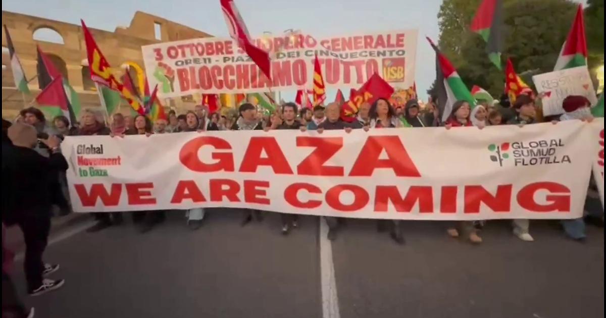 5mila manifestanti al Colosseo contro l'abbordaggio della Flotilla