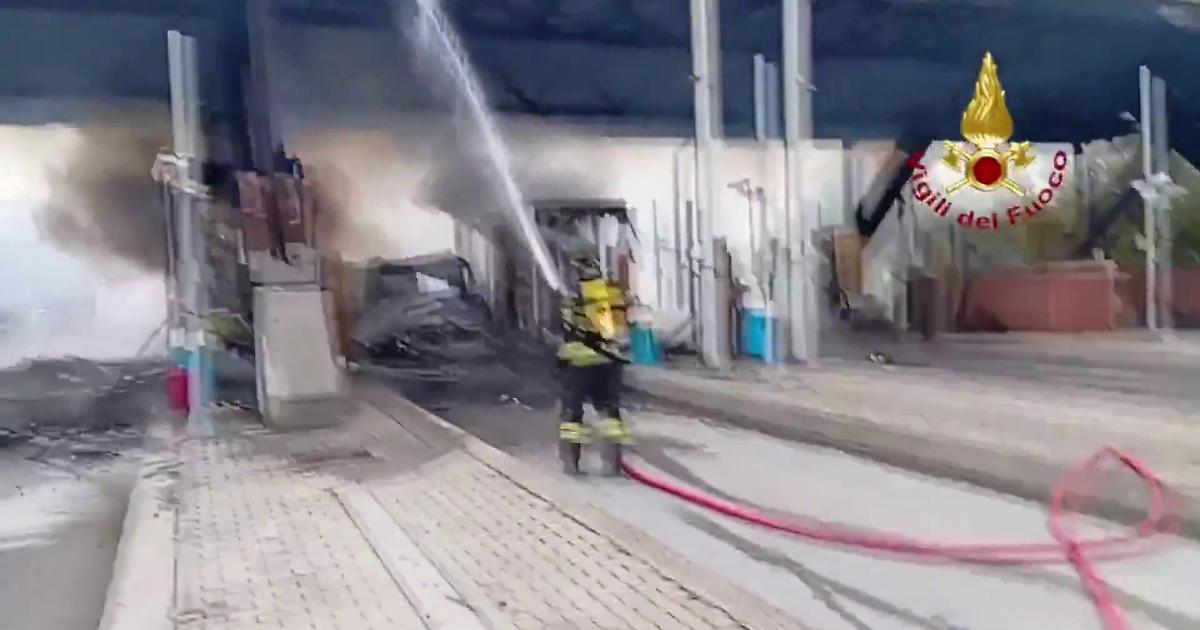 Incendio sulla A21, in fiamme casello autostradale di Brescia Sud