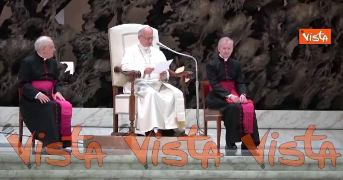 "Ripeto a voi oggi l'invito fatto da Papa Francesco nel suo ultimo messaggio per la prossima Giornata Mondiale delle Comunicazioni Sociali: disarmiamo la comunicazione da ogni pregiudizio, rancore, fanatismo e odio; purifichiamola dall'aggressività. Non serve una comunicazione fragorosa, muscolare, ma piuttosto una comunicazione capace di ascolto, di raccogliere la voce dei deboli che non hanno voce. Disarmiamo le parole e contribuiremo a disarmare la Terra. Una comunicazione disarmata e disarmante ci permette di condividere uno sguardo diverso sul mondo e di agire in modo coerente con la nostra dignità umana" così Papa Leone XIV durante l'incontro con la stampa nell'Aula Paolo VI.