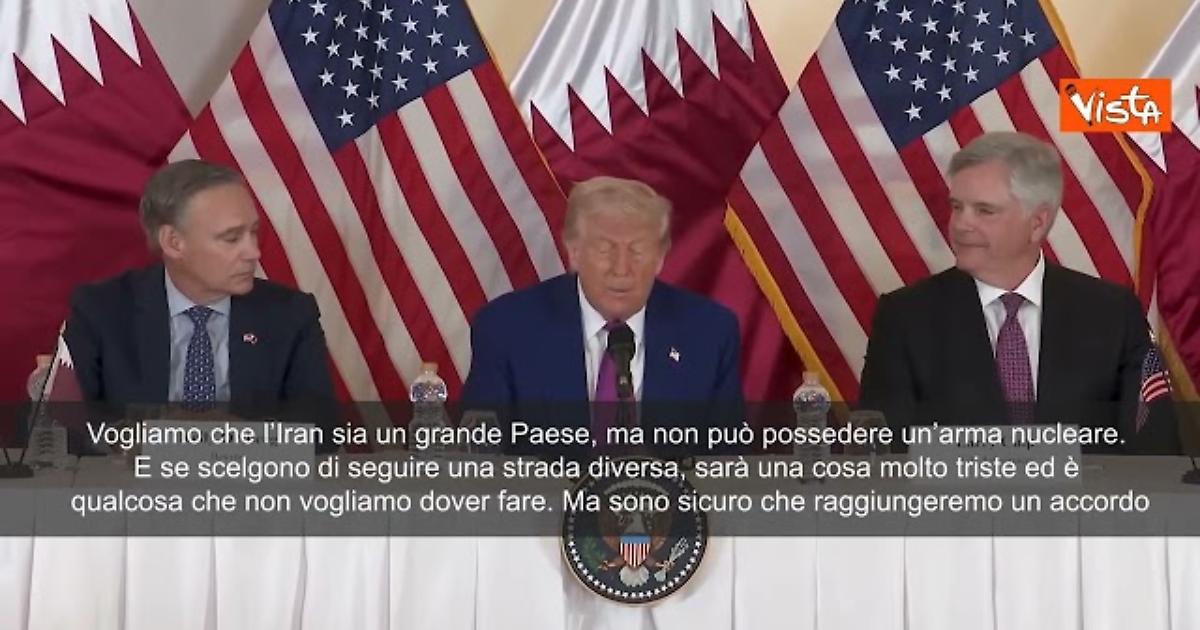 “Vogliamo che l’Iran sia un grande Paese, ma non può possedere un’arma nucleare. E se scelgono di seguire una strada diversa, sarà una cosa molto triste ed è qualcosa che non vogliamo dover fare. Ma sono sicuro che raggiungeremo un accordo”. Lo ha detto il Presidente degli Stati Uniti Donald Trump durante la sua visita in Qatar.