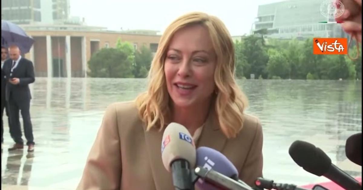 (Agenzia Vista) Tirana, 16 maggio 2025 “Penso che non dobbiamo gettare la spugna, penso che dobbiamo insistere per una cessate il fuoco incondizionato, che dobbiamo insistere per un accordo di pace serio che preveda garanzie di sicurezza per l'Ucraina ” . Così la Presidente del Consiglio Giorgia Meloni a margine del vertice della Comunità politica europea a Tirana. / Chigi Fonte: Agenzia Vista / Alexander Jakhnagiev