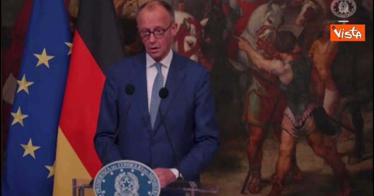 "Vorrei sottolineare espressamente mio apprezzamento per viaggio negli Usa della Presidente Meloni, lo ha fatto prestissimo ed è una dei protagonisti principali in Europa in modo che possiamo restare a fianco degli Stati Uniti", lo ha detto il Cancelliere Merz a Palazzo Chigi.