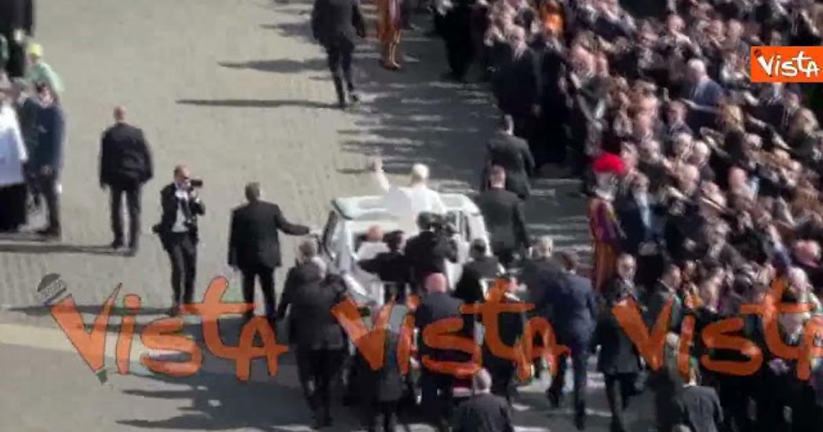 Leone XIV ha effettuato un giro in Papamobile per salutare i fedeli prima della Messa di insediamento, accompagnato dalle grida "Viva il Papa" e tanti applausi .