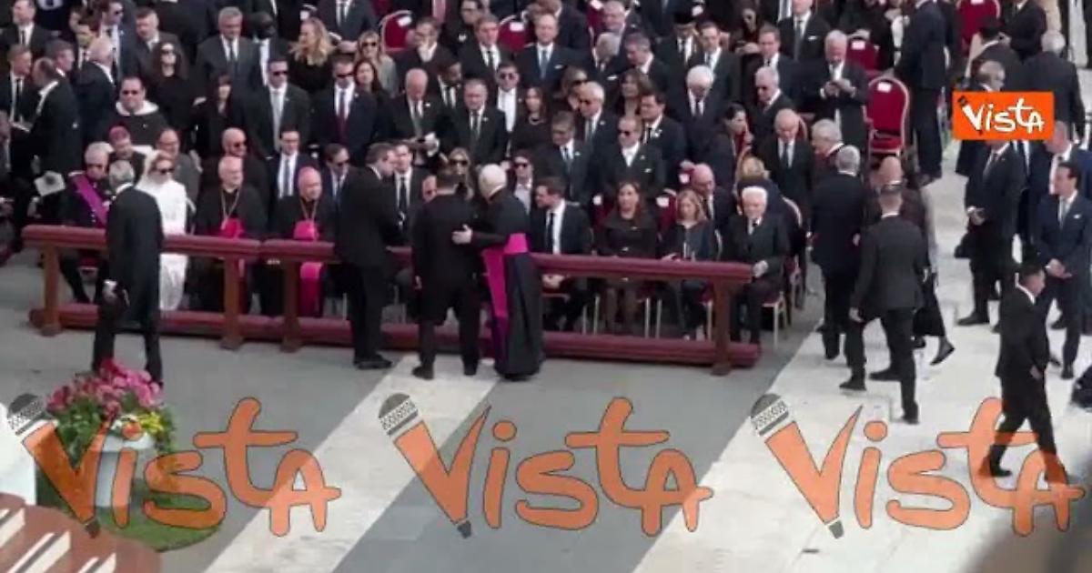 Il Presidente ucraino Zelensky a San Pietro per la Messa di insediamento di Papa Leone XIV, l'abbraccio con Meloni prima della cerimonia,