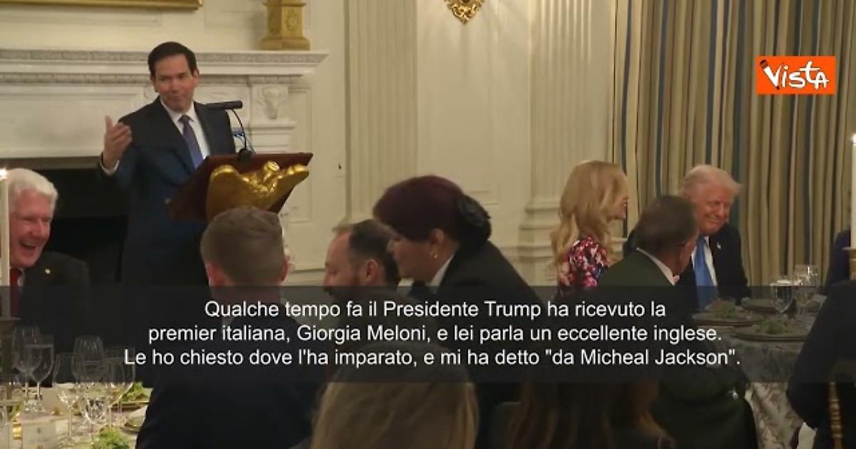 "Qualche tempo fa il Presidente Trump ha ricevuto la premier italiana, Giorgia Meloni, e lei parla un eccellente inglese. Le ho chiesto dove l'ha imparato, e mi ha detto "da Micheal Jackson". Ovviamente non è che le ha dato lezioni, ma l'ha imparato dalle canzoni, questo per farvi capire quanto la nostra cultura è importante e quanta influenza ha nel mondo", così il segretario di Stato Usa Marco Rubio parlando a una cena di beneficenza al Kennedy Center di Washington.