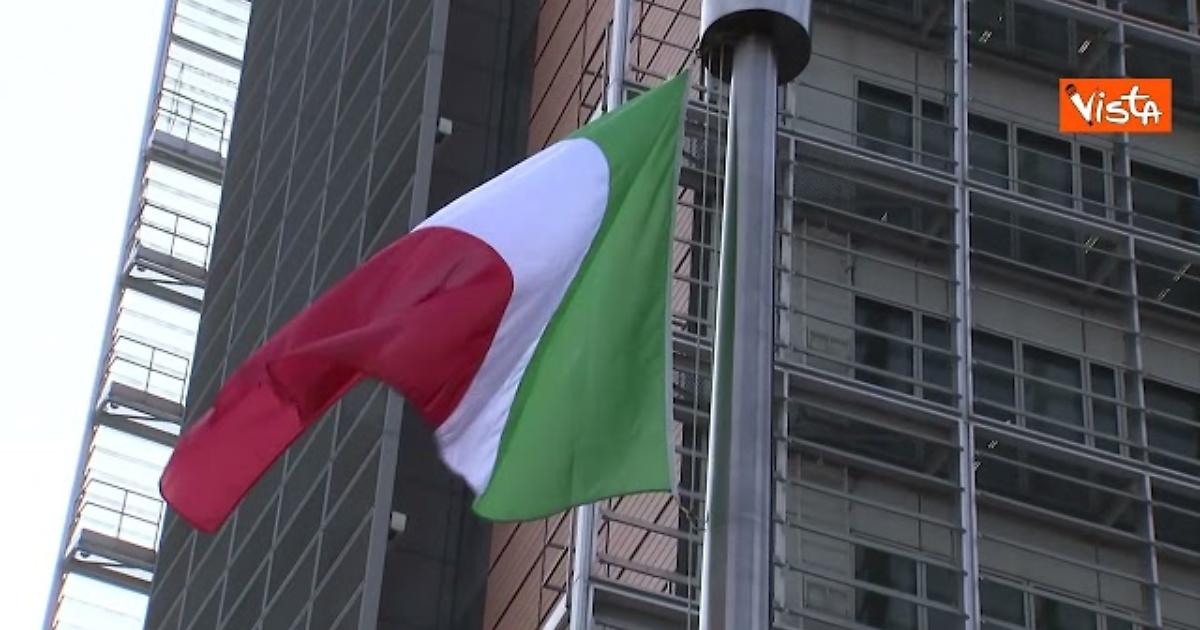La bandiera italiana sventola a Bruxelles a fianco a quella Ue in onore di Mattarella