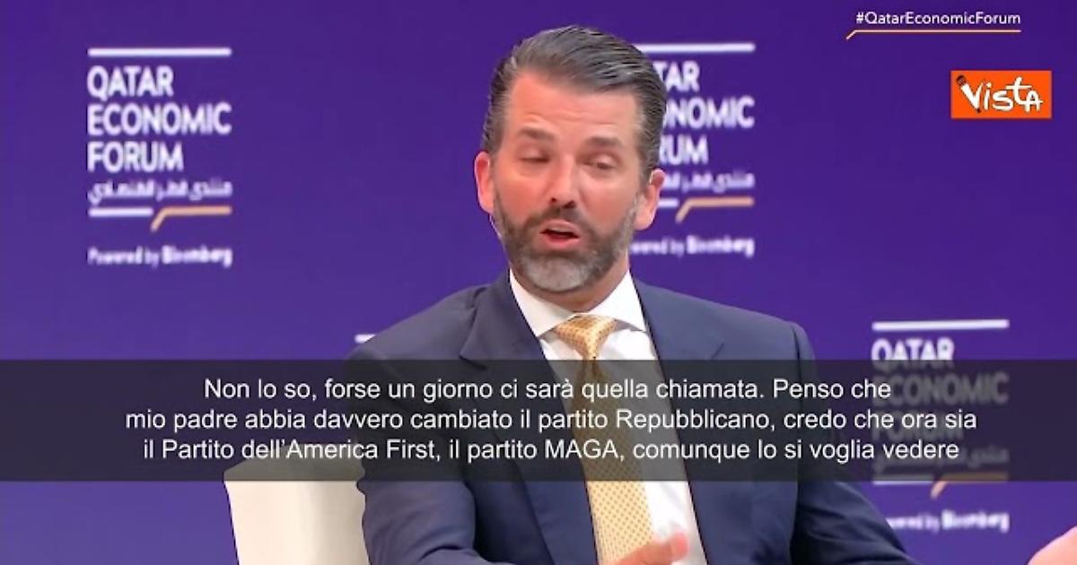 (Agenzia Vista) Doha, 21 maggio 2025 Non lo so, forse un giorno ci sarà quella chiamata. Penso che mio padre abbia davvero cambiato il partito Repubblicano, credo che ora sia il Partito dell’America First, il partito MAGA, comunque lo si voglia vedere". Così Donald Trump Jr., figlio maggiore del Presidente Donald Trump, rispondendo a una domanda al Qatar Economic Forum. Qatar Economic Forum Fonte: Agenzia Vista / Alexander Jakhnagiev
