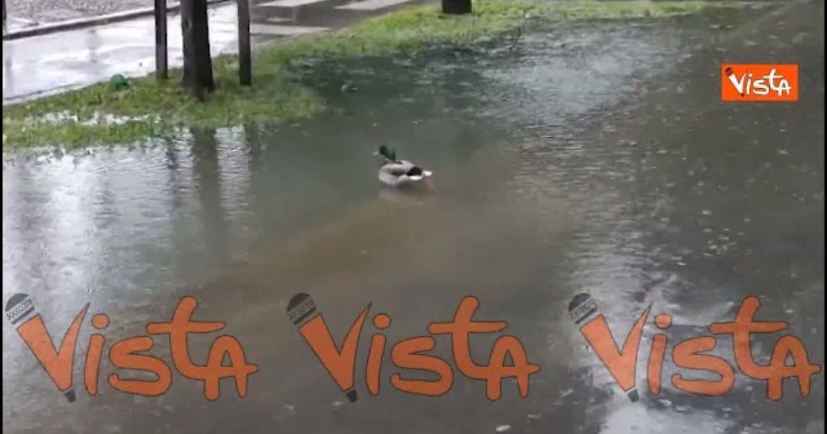 Forti piogge hanno colpito la città di Milano, allagando strade e provocando problemi alla viabilità. Una papera ha scambiato una pozzanghera per uno stagno. Le immagini