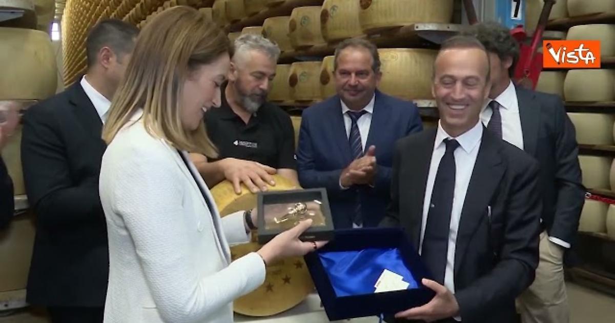 Nell’ambito della missione istituzionale in Italia, la Presidente del Parlamento europeo Roberta Metsola ha visitato il caseificio “4 Madonne” di Lesignana (Modena), uno dei simboli della filiera del Parmigiano Reggiano Dop. Ad accoglierla il presidente del Consorzio di tutela, Nicola Bertinelli. Al termine della visita, il presidente del Consorzio, Nicola Bertinelli, ha consegnato alla presidente Metsola il Coltellinod’oro, una rappresentazione di alta oreficeria italiana realizzata in oro dell’iconico coltello a mandorla utilizzato per l’apertura della forma e per scagliare il formaggio.