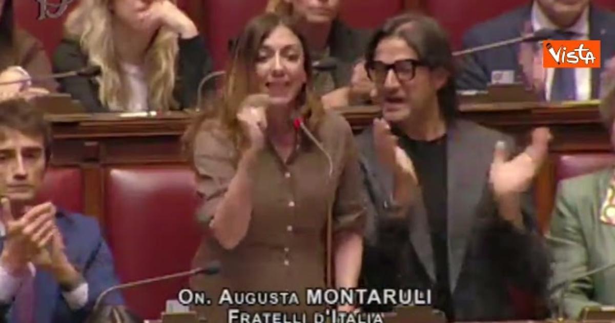 "Voteremo sì al Decreto sicurezza perchè è un provvediemnto sociale, qeulla socialità che la sinistra ha perso di vista e che invece è baluardo della destra", così Augusta Montarul di FdI in Aula alla Camera, scatenando la bagarre. Dai banche del M5s sono stati esposti cartelli con scritto "Non si arresta la protesta", "La democrazia non si piega", "Decreto paura".