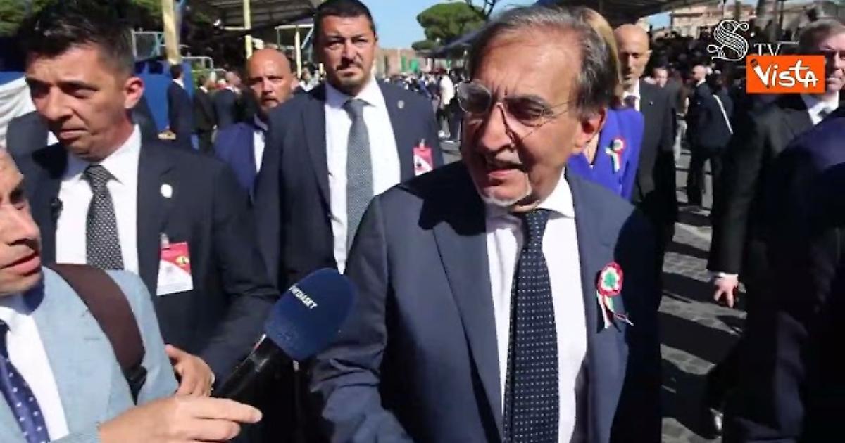 “L’importanza di questa festa la si capisce innanzitutto guardando quanta gente viene a onorare ogni anno il 2 giugno, spesso per la seconda, terza, quarta volta. Sono qui a testimoniare che è una data che unisce gli italiani, senza distinzione alcuna. È la vera festa della Repubblica”. Così il presidente del Senato Ignazio La Russa, fermandosi a parlare con i giornalisti a margine delle celebrazioni per il 2 giugno ai Fori Imperiali. “Odio social? I festeggiamenti del 2 giugno sono l’antidoto. L’amore per la Repubblica, la patria, per l’unità. Questa è una festa che unisce senza discriminazioni. La mia festa preferita” e per questo è “l’antidoto vero all’odio”.