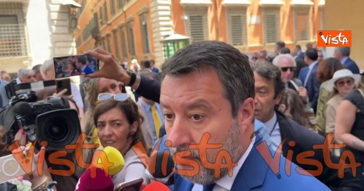 (Agenzia Vista) Roma, 4 giugno 2025 La dichiarazione del vicepremier all’uscita del Senato. Fonte: Agenzia Vista / Alexander Jakhnagiev