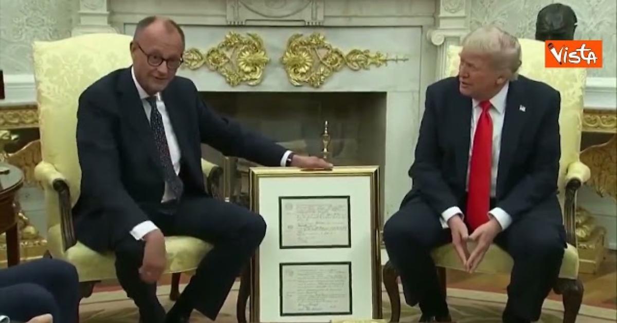Merz dona a Trump certificato di nascita del nonno Friedrich nato in Germania nel 1869