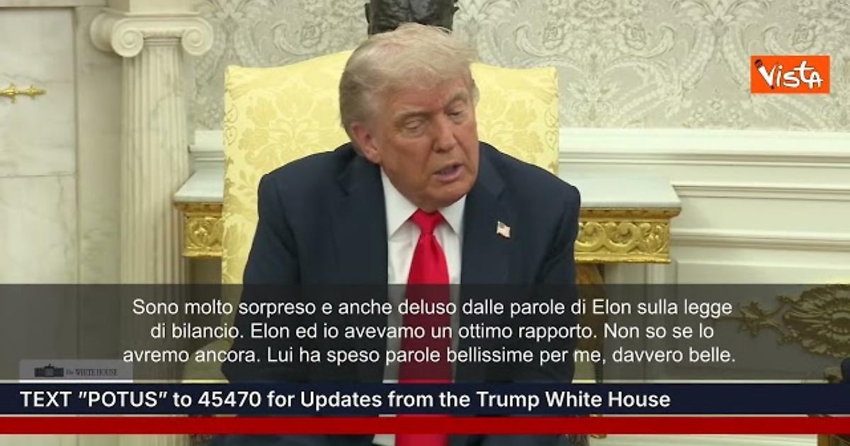 (Agenzia Vista) Usa, 05 giugno 2025 Sono molto sorpreso e anche deluso dalle parole di Elon sulla legge di bilancio. Elon ed io avevamo un ottimo rapporto. Non so se lo avremo ancora. Lui ha speso parole bellissime per me, davvero belle. Mi ha sostenuto, è stato al mio fianco, ha detto che avevo ragione su tutto. Ed è vero, avevo ragione su tutto. Ed ho ragione anche sulla mia legge, “Big Beautiful Bill”. Così Trump alla Casa Bianca. X Fonte: Agenzia Vista / Alexander Jakhnagiev