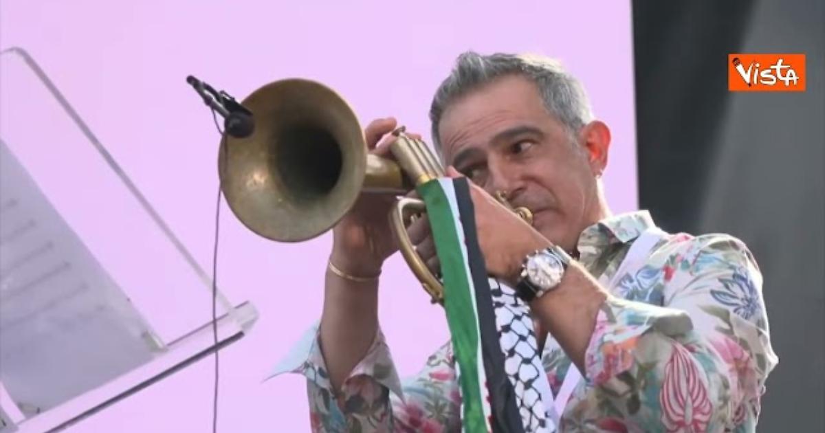 Ecco l'esibizione di Paolo Fresu alla tromba sul palco della manifestazione pro Gaza a Roma.