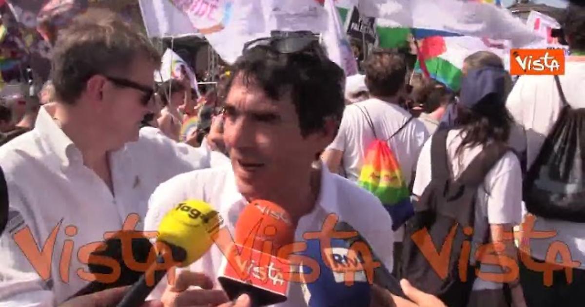(Agenzia Vista) Roma, 14 giugno 2025 "L'Italia è sulla buona strada per diventare come l'Ungheria di Orban. Tanto per cominciare non ha censurato la scelta di Orban di vietare il Pride, rispetto ad altri. Mi pare un fatto incredibile l'idea che nel 2025 qualcuno pensi di non vedere o addirittura di cancellare questo mondo, questa piazza, queste persone. Di cancellare la vita, l'amore, la libertà di scegliere. È terrificante. Siamo di fronte a una destra piena di sepolcri imbiancati, peraltro ipocriti di prima classe. Sono quelli della famiglia naturale che poi nelle loro scelte private non sono coerenti. Certo, nelle loro scelte private fanno quello che vogliono, giustamente, ma almeno non spiegassero agli altri come devono vivere" così il deputato Nicola Fratoianni di Alleanza Verdi e Sinistra, durante il Roma Pride. Fonte: Agenzia Vista / Alexander Jakhnagiev