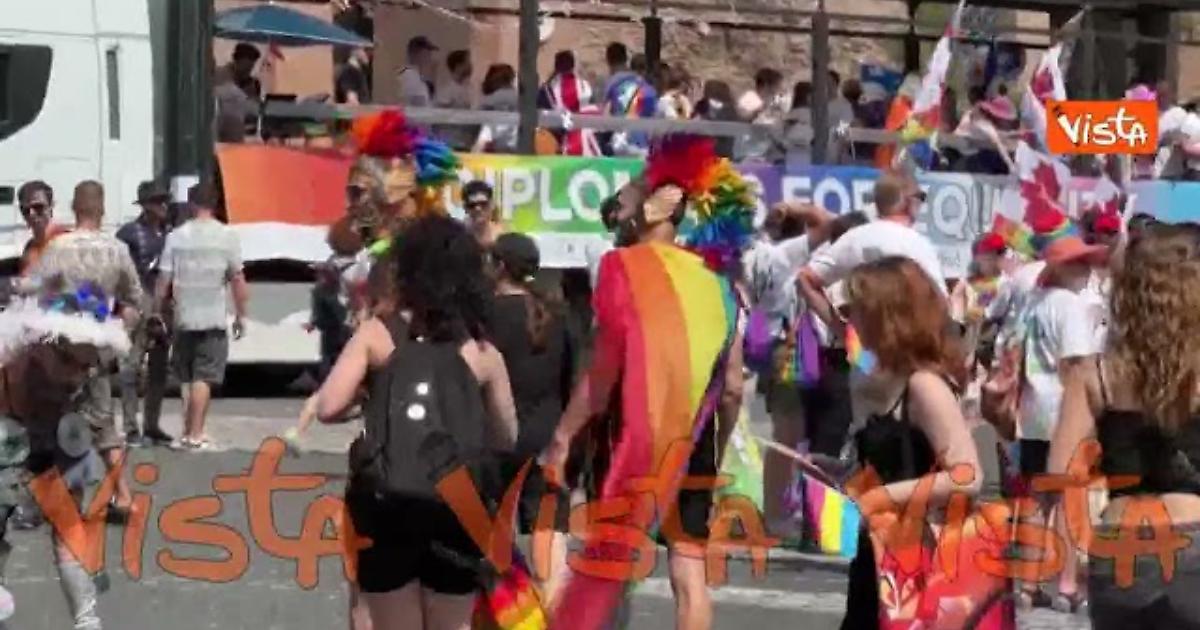 "Free animals", i cartelli degli animalisti travestiti da frati al Pride di Roma.