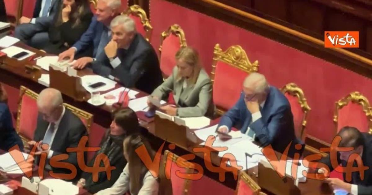 La premier Meloni, in Aula al Senato per la discussione sul prossimo Consiglio Ue, legge un biglietto, poi lo piega in due.