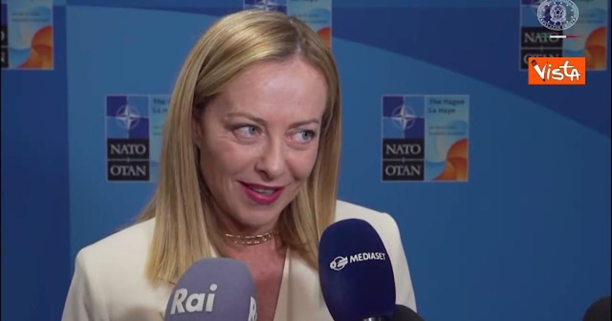 (Agenzia Vista) Aja, 25 giugno 2025 “Penso che tutti capiscano che questo è il momento in cui bisogna riuscire ad ottenere il cessate il fuoco a Gaza, quindi l'Italia è impegnatissimo per ottenere questo risultato.” Così la Presidente del Consiglio Giorgia Meloni in un punto stampa al vertice Nato. / Chigi Fonte: Agenzia Vista / Alexander Jakhnagiev