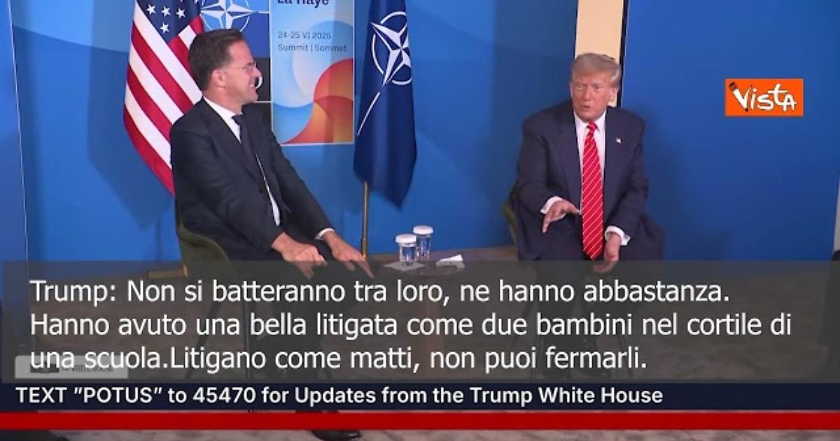 Guerra Israele Iran, Trump: Hanno litigato come bimbi, Rutte: Papà a volte deve usare modi forti