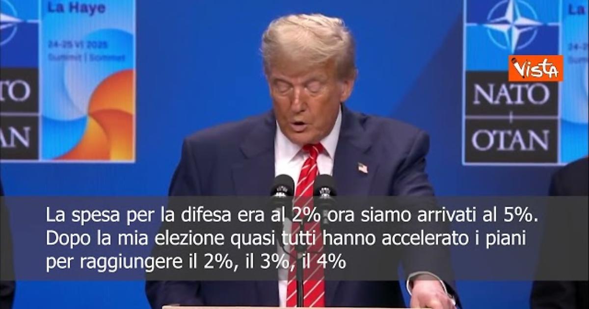 “Quando gli alleati raggiungeranno questa cifra, aggiungeranno più di 1 trilione di dollari all'anno. Pensate a quel trilione all'anno alla nostra difesa comune. E questo è davvero un monumento alla vittoria. Ma è una vittoria monumentale per gli Stati Uniti, perché davamo molto più di quanto ci spettasse, il che era piuttosto ingiusto, in realtà. Ma questa è una grande vittoria per l'Europa e per la civiltà occidentale in generale.” Così il Presidente degli Stati Uniti Donald Trump in una conferenza stampa al vertice Nato.