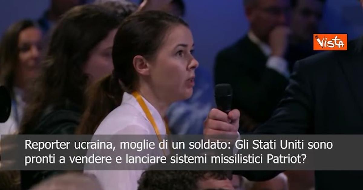 (Agenzia Vista) Aja, 25 giugno 2025 Il Presidente degli Stati Uniti Donald Trump in una conferenza stampa al vertice Nato risponde a una giornalista ucraina, moglie di un soldato, riguardo al sistema missilistico Patriot: "Vedremo se possiamo renderne disponibili alcuni. Sono molto difficili da ottenere. Ne abbiamo bisogno anche noi... è un'ottima domanda... capisco che la cosa la turbi molto." Courtesy: The White House Fonte: Agenzia Vista / Alexander Jakhnagiev
