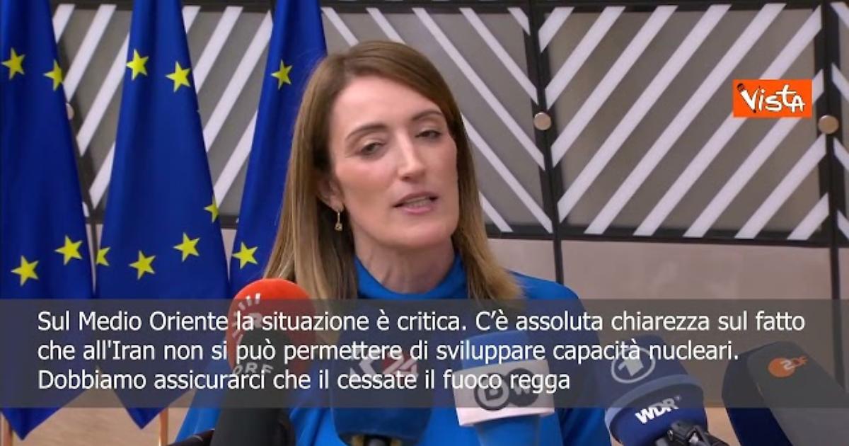 “Sul Medio Oriente, la situazione è critica. C'è un'ampia richiesta di de-escalation. C'è assoluta chiarezza sul fatto che all'Iran non si può permettere di sviluppare capacità nucleari. Dobbiamo assicurarci che il cessate il fuoco regga e dobbiamo anche lavorare per un cessate il fuoco a Gaza, affinché gli aiuti umanitari tanto necessari e vitali raggiungano tutti coloro che ne hanno disperatamente bisogno.”. Così la Presidente del Parlamento europeo Roberta Metsola a margine del Consiglio europeo