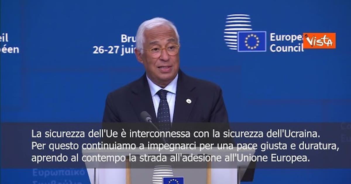 “La sicurezza dell'Europa è interconnessa con la sicurezza dell'Ucraina. Per questo continuiamo a impegnarci per una pace giusta e duratura, aprendo al contempo la strada all'adesione all'Unione Europea. […] Allo stesso tempo, continuiamo a esercitare pressioni sulla Russia e abbiamo adottato 17 pacchetti di sanzioni per l'espulsione e stiamo lavorando per implementarne uno nuovo”. Così il Presidente del Consiglio Europeo Antonio Costa durante la conferenza stampa al termine dei lavori del Consiglio europeo.