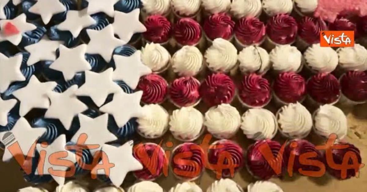 La festa a Villa Taverna, sede dell'Ambasciata Usa a Roma, in occasione del 4 Luglio, giorno dell'Indipendenza americana. Ecco i cupcacke colorati che formano la bandiera Usa a Stelle e Strisce.