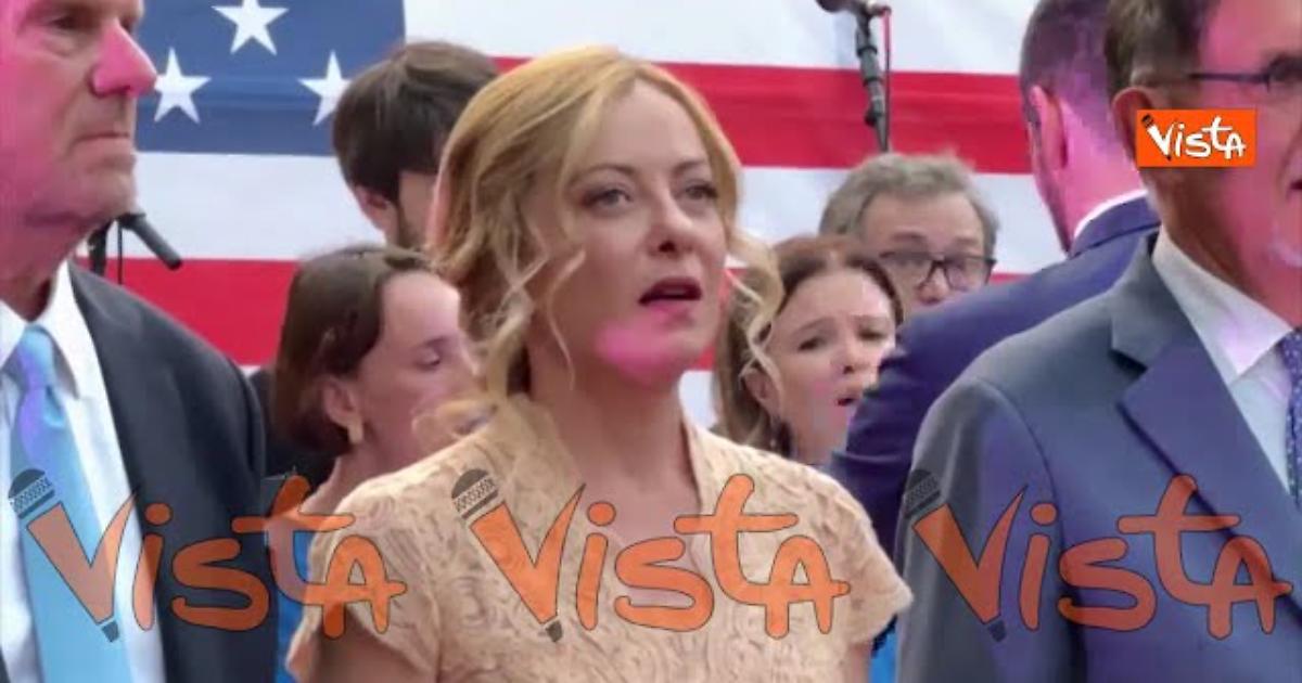 La festa a Villa Taverna, sede dell'Ambasciata Usa a Roma, in occasione del 4 Luglio, giorno dell'Indipendenza americana. Presenti, oltre al padrone di casa, l'ambasciatore Tilman Fertitta, la premier Meloni, i suoi vice Tajani e Salvini e il Presidente del Senato La Russa.