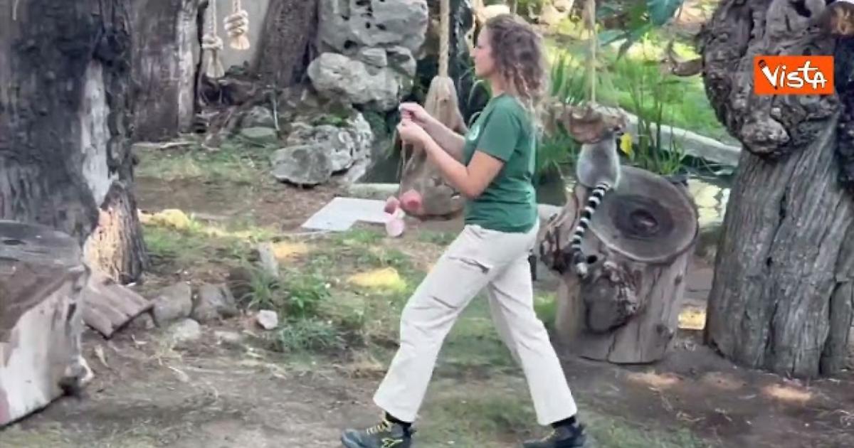 Alle varie specie di primati, come i tamarini imperatore e i lemuri catta, i guardiani distribuiscono ghiaccioli di frutta congelati a base di mele, albicocche e cocomero, accompagnati da canne di bambù ripiene di yogurt. Oltre a dare refrigerio, questi ultimi ‘strumenti’ sono una forma di arricchimento ambientale e consentono agli animali di aguzzare l’ingegno per trovare il cibo.