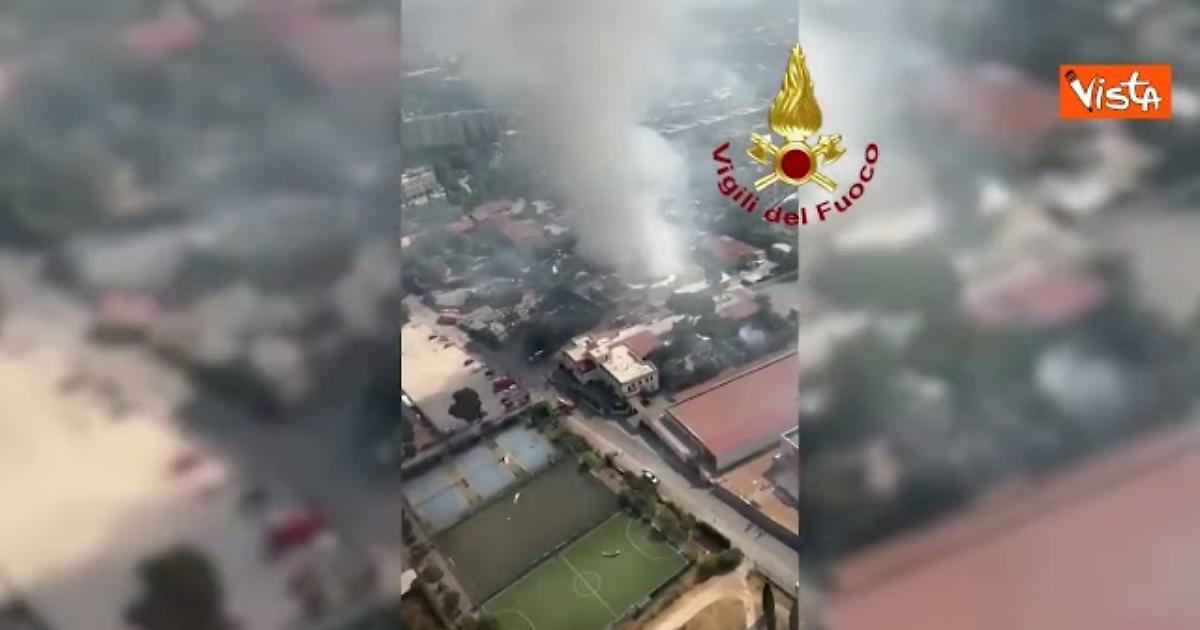 Una violentissima esplosione si è verificata a Roma nel quartiere Prenestino Labicano, nei pressi della fermata Teano della Metro C. L'esplosione, avvertita in tutta la Capitale, è seguito a un incendio sviluppatosi in un distributore di carburanti. Ecco le immagini dell'incendio dall'elicottero dei Vigili del Fuoco.