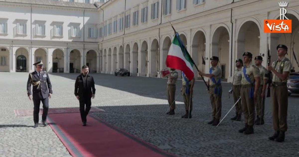 (Agenzia Vista) Roma, 09 luglio 2025 La visita del Presidente Zelensky accolto al Quirinale dal Presidente Mattarella. “Benvenuto in questo Palazzo: è un gran piacere incontrarla nuovamente per ribadire la grande amicizia e il pieno sostegno dell'Italia all'indipendenza, alla sovranita’ e all'integrita’ territoriale dell'Ucraina", ha detto il Presidente Mattarella. Fonte: Agenzia Vista / Alexander Jakhnagiev